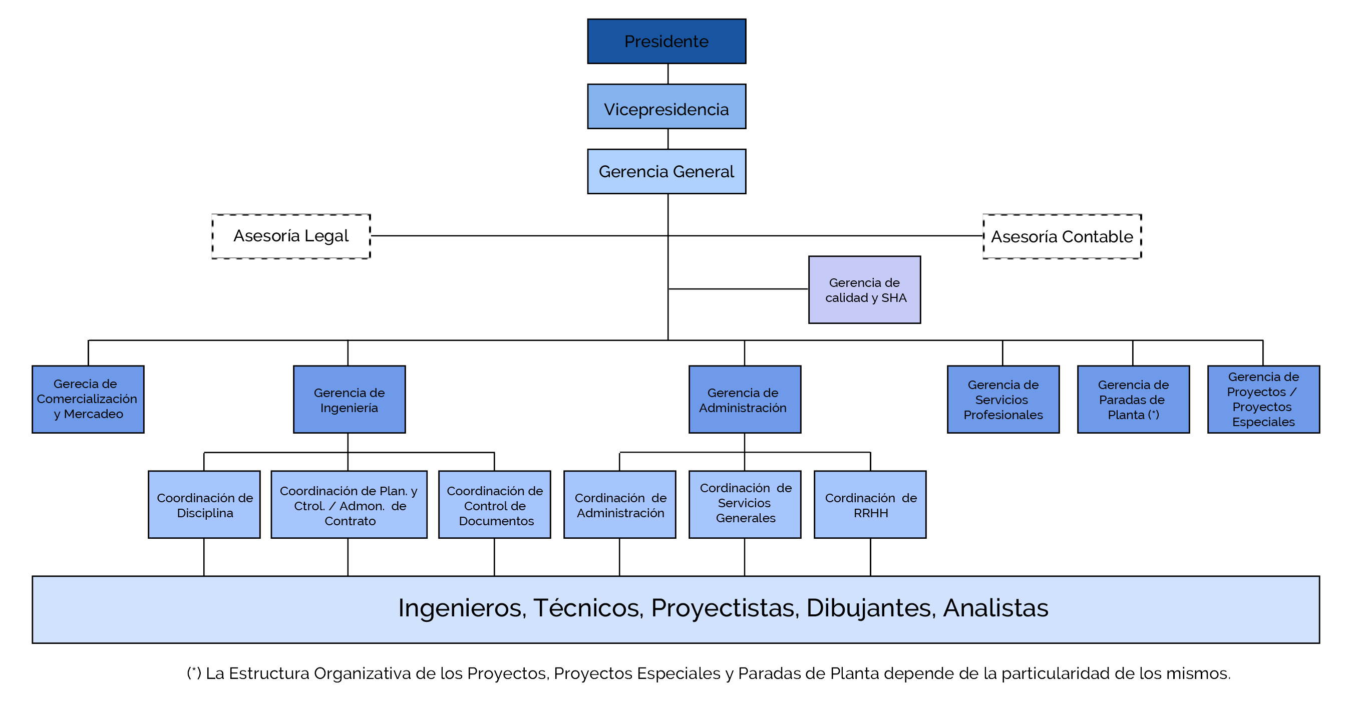 Trabajar con criterio de exclenecia en los proyectos de Ingeniería Conceptual, Básica y de Detalle, Procura, Gerencia e Inspección de Proyectos y Gerencia Técnica de Paradas de Planta, empleando tecnologías de punta, para lograr los estándares de la calidad, eficacia y competitividad, con un efectivo sentido de compromiso; fomentando el trabajo seguro, la calidad de vida del personal, el compromiso social y bajo una estrategía que garantice la mejor relación precio-valor, para los Clientes y la Organización en un marco global de gestión que beneficie a los accionistas,a nuestro personal, al ambiente y al pais.